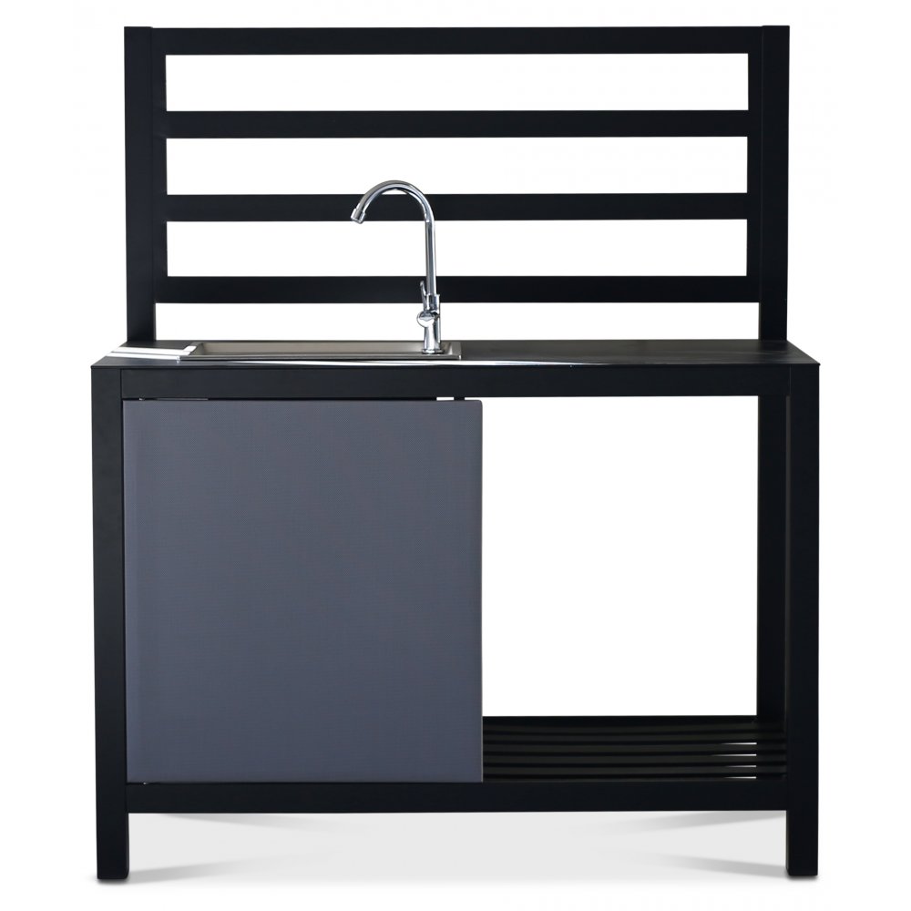 Perfekt till mysiga grillkvällar och familjeträffar på altanen och uteplatsen. Stommen är byggd i lackad metall och en rostfri vask med kran.