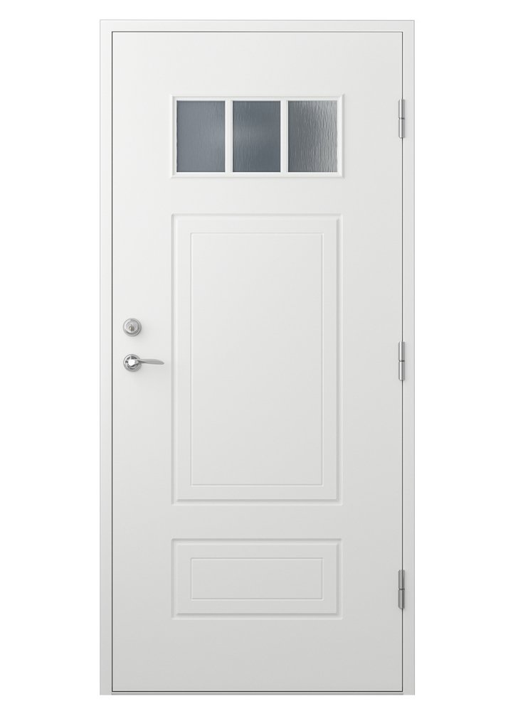 Många ytterdörrar på marknaden har en slät insida, men med denna dörren får du både insida och utsida med det fina frästa mönstret. Dessutom har den dubbel tätningslist för extra isolerande effekt, låskista och justerbara gångjärn inkluderat.